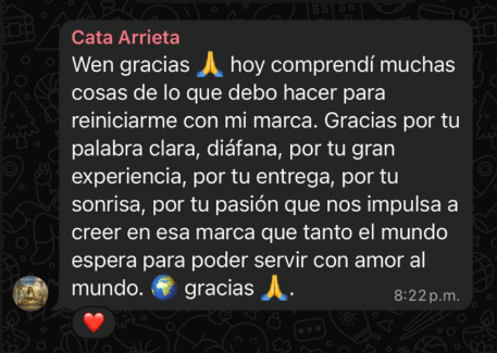 ¡En 15 años trabajando con marcas como Ducati, Vespa, y Asics he pasado de todo! Desde trabajar en agencias en Europa, hasta enfermar por no vivir alineada con mi propósito. Pero lo que descubrí después de ese momento de quiebre... simplemente ES UN ANTES Y UN DESPUÉS. Ordené todo lo que sabía en un sistema ejecutable, lancé mi propia agencia con un mínimo viable en días, y hoy cobro hasta 10.000 USD por cliente